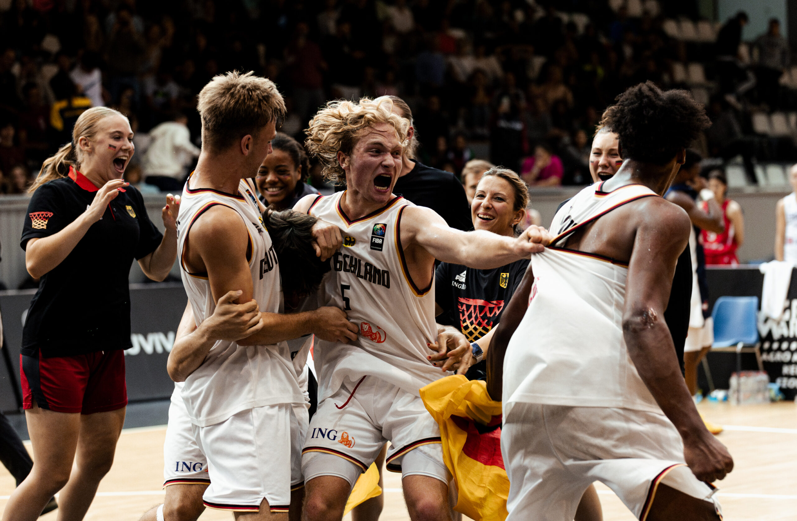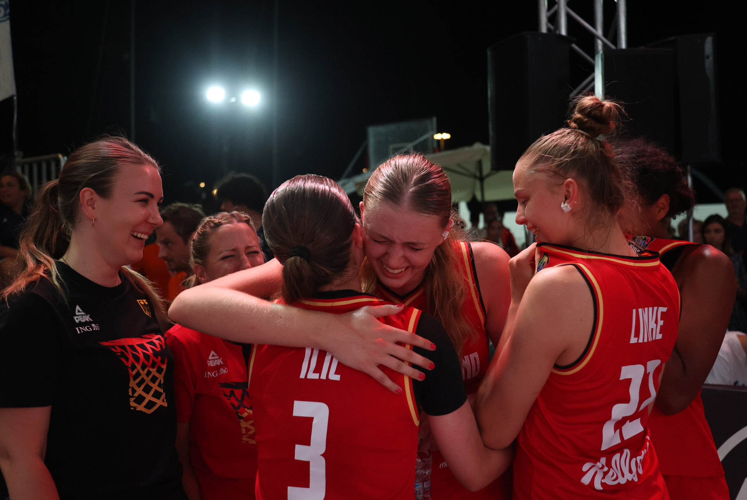 Rund drei Wochen ist es her, seit vier deutsche Korbjägerinnen bei den Olympischen Spielen in Paris für mehr als Furore sorgten. Svenja Brunckhorst, Sonja Greinacher, Marie Reichert und Elisa Mevius holten Gold … im 3×3! Fassungsloses Staunen, unbändiger Jubel, grenzenlose Freude folgten dem historischen Triumph, es durfte ordentlich gefeiert werden. Vor den Augen des spanischen Königs, der ehemaligen NBA-Stars Dirk Nowitzki und Pau Gasol, FIBA-Präsident Scheich Saud Ali Al Thani, FIBA-Generalsekretär Andreas Zagklis und natürlich DBB-Präsident Ingo Weiss wurden die freudestrahlenden Olympiasiegerinnen mit den Goldmedaillen geehrt und stürzten sich anschließend in den (Medien)-Rummel. Wie sieht es heute aus bei den vier Frauen? Wie ist es drei Wochen nach dem Olympiasieg, wer hat gratuliert, welche Einladungen gibt es, wie fühlt es sich an? Wir haben mit den vier Protagonistinnen gesprochen. Svenja Brunckhorst “Noch nicht begriffen” “Bei mir hat sich der ganze Trubel schon etwas gelegt. Es ist nicht mehr ständig präsent. Aber die beiden letzten Tage war ich zuhause, da habe ich die Goldmedaille natürlich meinen Freunden und Bekannten gezeigt. Und wir sind ja jetzt auch bei einigen Events eingeladen, da denkt man schon immer wieder daran.” Es sei aber nie so gewesen, dass sie beim Aufwachen oder Einschlafen an den Triumph gedacht hat. “Ganz, ganz viele Leute haben gratuliert. Aus der Politik Bundespräsident Steinmeier oder der SPD-Vorsitzende Lars Klingbeil zum Beispiel, oder der Hundeflüsterer Martin Rütter. Ich habe ja 2021 in Tokio 3×3 kommentieren dürfen, auch da kamen ganz viele Glückwünsche von den Athlet:innen, von Fabian Hambüchen oder Pommes Hens, natürlich aus dem Basketballbereich und und und.” Die Medaille habe sie noch relativ oft dabei, in einer Socke im Handgepäck. “Ich ziehe gerade um nach Berlin und wenn mit der Wohnung alles fertig ist, dann bekommt sie einen Ehrenplatz.” “Das habe ich noch nicht begriffen” sagt Svenja Brunckhorst über die Tatsache, dass sie nicht “nur” Olympiagold gewonnen, sondern in Paris auch das letzte Spiel ihrer Karriere absolviert hat. “Ich werde nicht mehr auf dieser großen Bühne stehen, das muss ich erst noch realisieren.” Sonja Greinacher “Ich gehöre jetzt dazu!” “Mir geht es sehr sehr gut! Ich genieße jeden Moment und das Ganze ist schon etwas mehr angekommen. Ob man das wirklich jemals richtig verstehen kann, was in Paris passiert ist, weiß ich aber gar nicht.” Sonja Greinacher hat sich über die gemeinsame Zeit mit der Familie direkt nach Olympia gefreut und ist auch gerne für Einladungen auf Events unterwegs. “Da nehme ich alles mit, im September geht es dann in den Urlaub.” Im Alltag kommen besonders in ruhigen Minuten die Erinnerungen wieder hoch, auch in den sozialen Medien natürlich. “Ich habe mir einige Spiele im Nachgang angeguckt, das Finale allerdings nicht, das ist wohl nicht mehr in der Mediathek. Die Medaille habe ich oft dabei, sonst ist sie noch im extra dafür vorgesehenen Koffer in meiner Wohnung. Wenn ich Ende des Jahres umziehe, erhält sie einen Ehrenplatz.” Bei den Gratulanten hat sie sich besonders über ehemaliuge Trainer:innen aus dem Nachwuchsbereich gefreut, “denn die haben ja einen großen Anteil am Erfolg”. “Am schönsten war es zu erleben, wie emotional mein sonst eher nüchterner Vater geworden ist, er hatte konstant Tränen in den Augen. Auch mein Bruder war sehr gerührt.” Derzeit wisse sie noch nicht, ob sie in der kommenden Saison noch einmal 3×3 spielen werde. “Ich habe früher immer zu den Olympia-Athlet:innen und besonders zu den Medaillengewinner:innen aufgeschaut, sie bewundert, das war alles ganz weit weg. Und jetzt gehöre ich dazu zu diesem kleinen, elitären Kreis. Verrückt!” schließt Greinacher. Marie Reichert “Schlusssirene ist der Hauptmoment” “Als im Finale die Schlusssirene ertönt ist und wir uns zu viert umarmt und kurz innegehalten haben … das war für mich der Hauptmoment, zu wissen, dass wir es wirklich geschafft haben!” sagt Marie Reichert, für die aber sonst schnell die Normalität wieder eingekehrt ist. “Ich habe ja einen neuen Verein in Italien (Faenza in der Nähe von Bologna – erste italienische Liga – Anm. d. Red.), da gibt es jetzt viele neue Eindrücke. Natürlich habe ich Olympia nicht vergessen, aber es wird wegen der Aktualität manchmal etwas verdrängt.” Die Erinnerungen kommen bei Marie Reichert eher zufällig, “wenn ich darauf angesprochen werde, dann realisiere ich immer wieder, was passiert ist.” Die Goldmedaille hat momentan einen Platz in der Wohnung ihrer Eltern in Kassel gefunden, “irgendwann später soll sie dann zu mir.” Ähnlich wie bei Sonja Greinacher hat auch Marie Reichert sich besonders über die Glückwünsche ehemaliger Trainer:innen gefreut: “Alle haben sich gemeldet, von den Anfängen meiner Karriere bis jetzt. Von vielen hatte ich lange nichts gehört, das war besonders schön. Sie haben viel dazu beigetragen, wo ich heute stehe.” Die Umstellung auf 5gegen5 in Italien sei “nicht leicht, aber machbar”. “Ich habe seit November nicht mehr 5gegen5 gespielt. Auf jeden Fall mehr laufen (lacht), die Gewöhnung an den leichteren Ball, da kommt man aber schnell wieder rein. Ich möchte es mit 3×3 im Sommer und 5gegen5 im Winter erst einmal so weiterlaufen lassen. Ob ich mich später einmal nur für eine Disziplin entscheide, hängt auch davon ab, wie weit sich 3×3 professionalisiert.” Elisa Mevius “Wird immer normaler” “Es wird immer normaler mit der Zeit”, sagt Elisa Mevius, angesprochen darauf, wie sie sich aktuell fühlt nach dem Olympiasieg.”Wir leben alle weiter, aber die Freude kommt auch immer wieder. Ich persönlich gucke sehr gerne in meine Galerie mit den vielen Fotos, die wir bekommen haben. Die Fotos aus Paris sind einfach unfassbar. Ja, und dann habe ich mir ja die Olympischen Ringe als Tattoo stechen lassen,